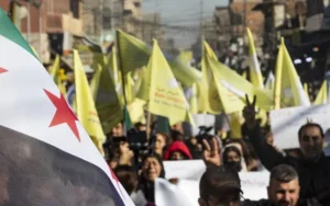 Dans ce contexte, le HTS et les FDS ont tenté de conclure des accords de coexistence. Mazlum Abdi, commandant en chef des FDS, et al-Jolani, président provisoire de la Syrie, étaient en communication pour éviter une confrontation directe à Alep, où leurs forces étaient toutes deux présentes. Au cours de ce conflit qui a duré plus d’une décennie, la DAANES a été la région la plus stable de Syrie, tant sur le plan politique qu’économique. Pendant cette période, l’administration dirigée par les Kurdes n’avait jamais appelé à la sécession de la Syrie, mais à un pays démocratique et fédéré. Début 2025, les principaux bâtiments administratifs de la DAANES ont commencé à arborer le drapeau de l’indépendance syrienne aux côtés du drapeau du Rojava, un geste signifiant leur volonté de construire une nouvelle Syrie plutôt que de poursuivre un programme sécessionniste. De nombreuses manifestations ont été organisées dans les grandes villes comme Qamishlo, où le drapeau des FDS et les drapeaux de l’indépendance flottaient côte à côte.